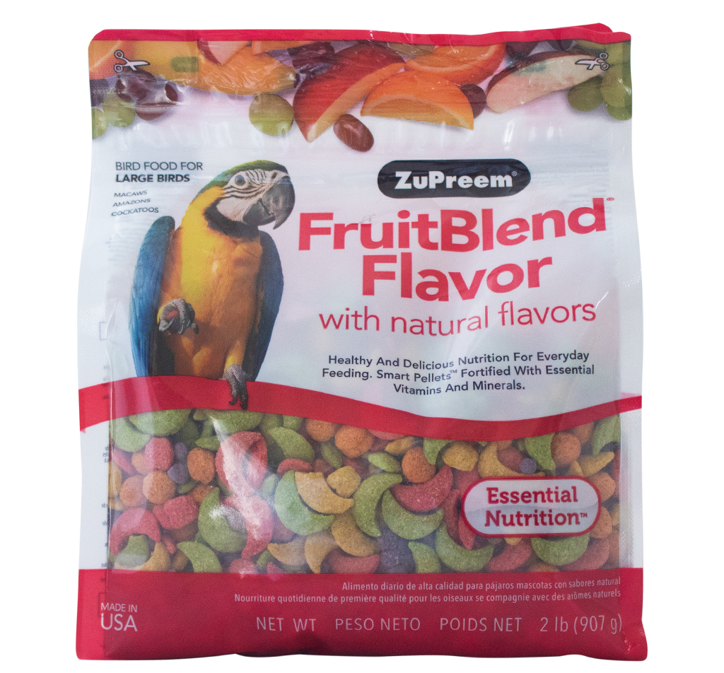 El alimento ZuPreem FruitBlend es una dieta premium ideal para guacamayas, cacatúas, amazonas y otros loros grandes.