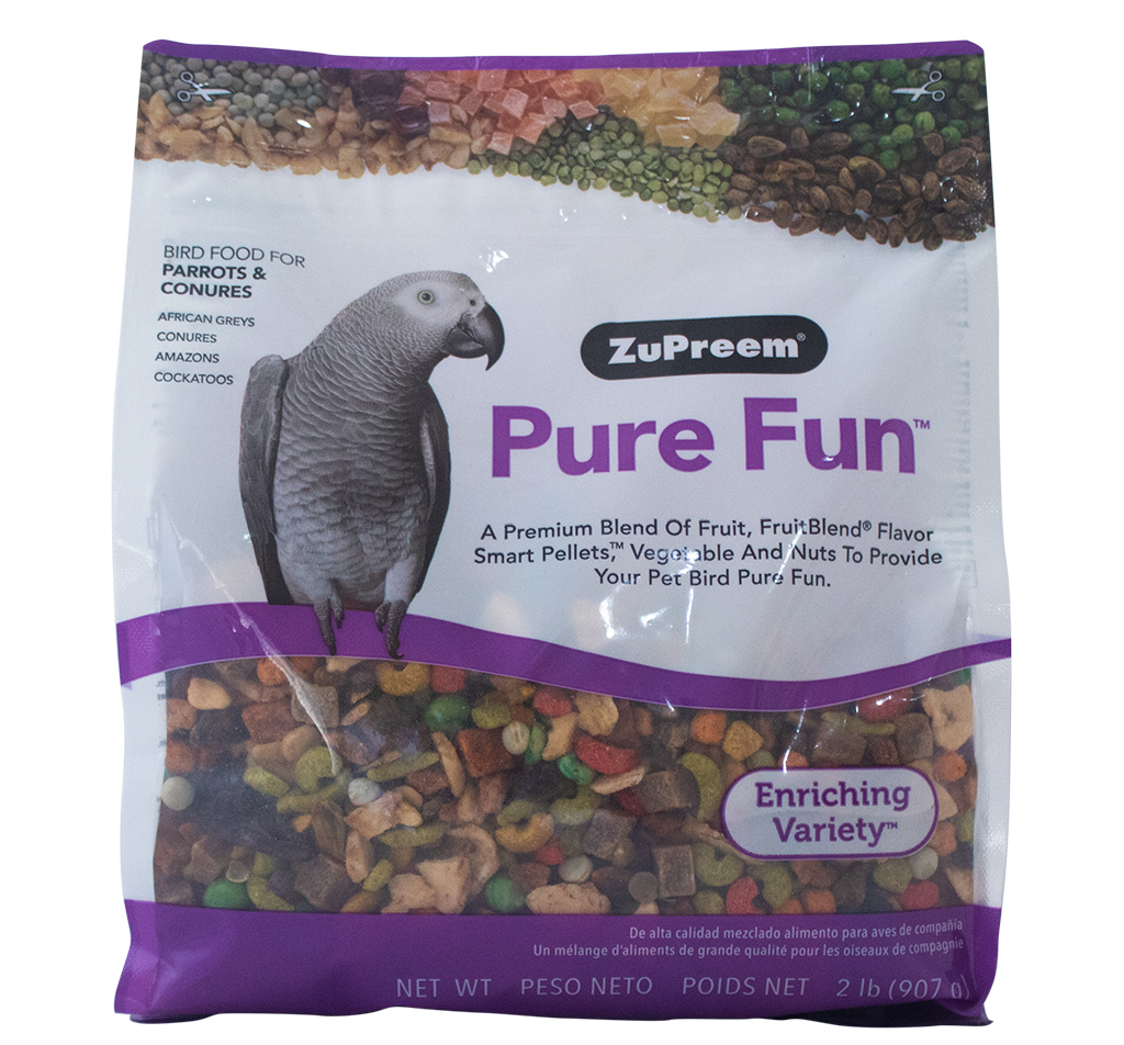 El alimento para aves Pure Fun® para loros y conuros es una mezcla de frutas de primera calidad, Smart Pellets, croquetas FruitBlend, verduras y frutos secos para estimular y fortalecer a estas mascotas emplumadas.