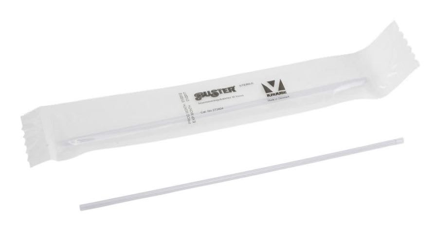 Estéril. Redonda en la parte superior con conexión luer para jeringa.